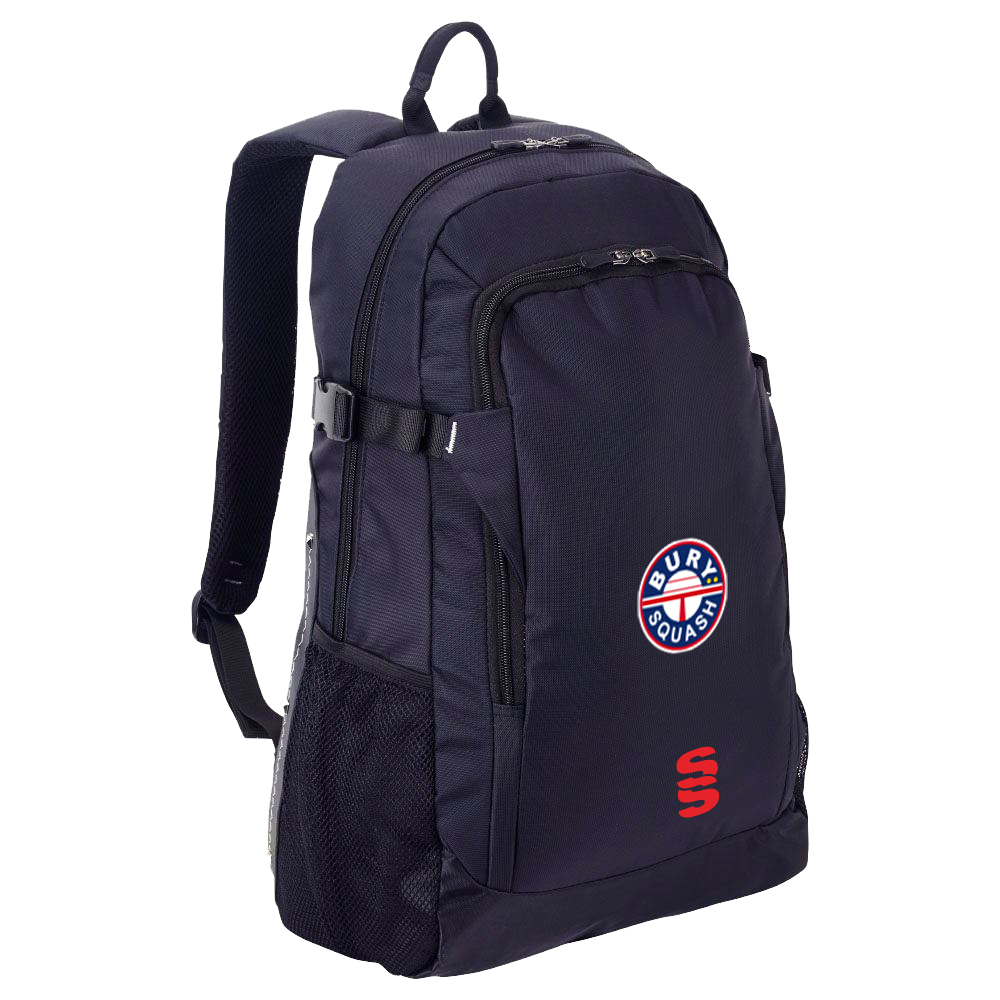 A over shoulder quality backpack made of polyester material with our Surridge SS logo.